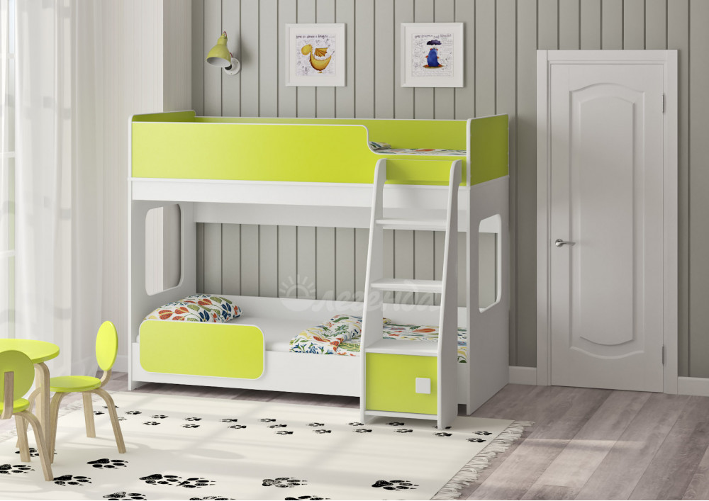 Высота кровати – всего 1405 мм.Удобно - взрослый может заправить кровать,не забираясь на второй ярус.