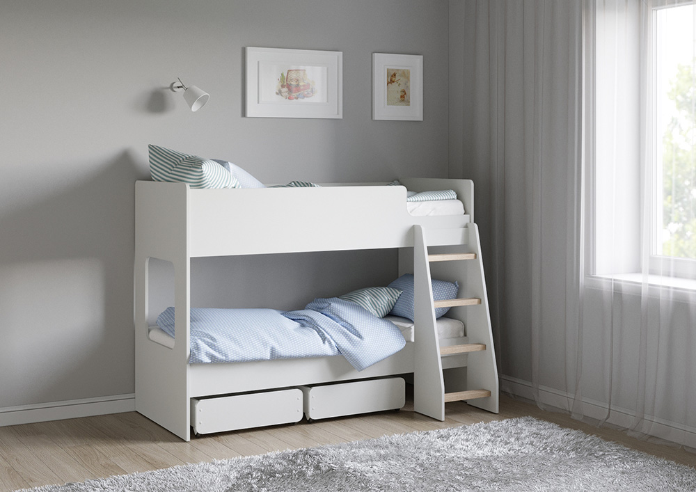 Кровать укомплектована 2-мя выдвижными ящиками.