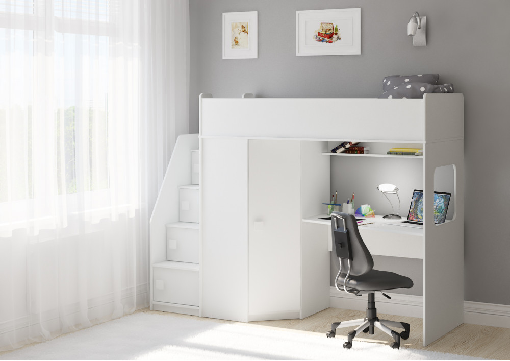 Учебная зона со столом под спальным местом открывает возможности для письменных работ,а также здесь удобно расположить ноутбук.